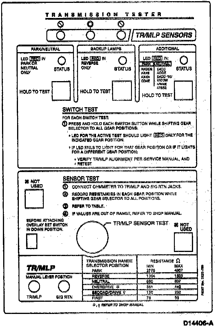 3. Attach the TR/MLP Sensor overlay to the Transmission Tester.