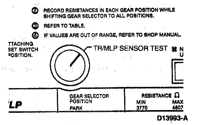 Home >> Ford >> 1994 >> Taurus V6-182 3.0L >> Repair and Diagnosis >> Powertrain Management >> Transmission Control Systems >> Testing and Inspection >> Component Tests and General Diagnostics >> AX4N >> TR/MLP Sensor Testing