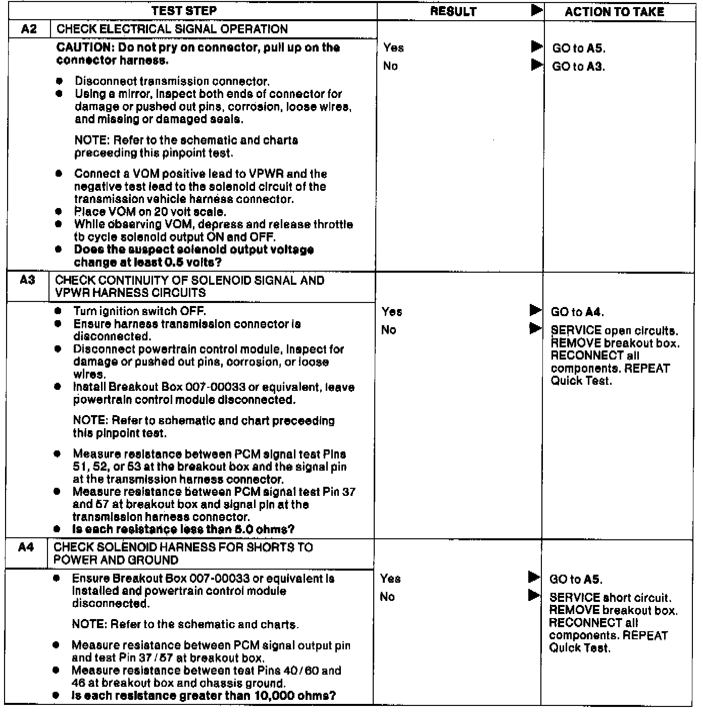 This Pinpoint Test is designed to diagnose the shift solenoid electrical system ONLY.