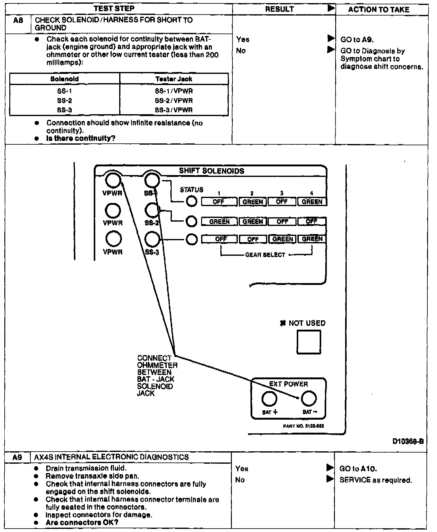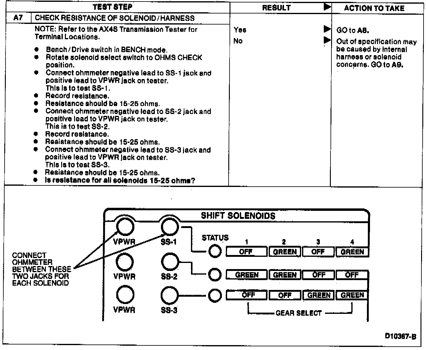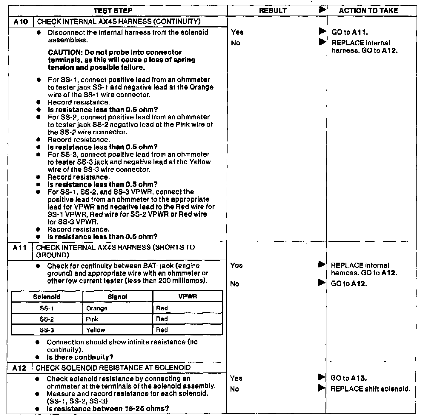 Home >> Ford >> 1994 >> Taurus V6-182 3.0L >> Repair and Diagnosis >> Powertrain Management >> Transmission Control Systems >> Testing and Inspection >> Pinpoint Tests >> A: Shift Solenoids >> AX4S