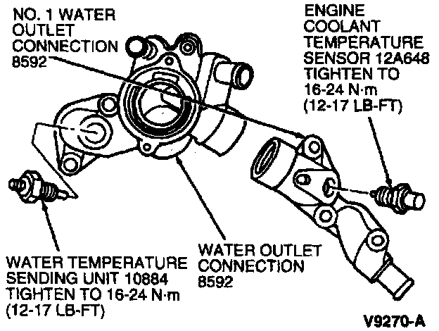 1. Install ECT sensor, tighten to 16-24 Nm (12-17 ft lb).