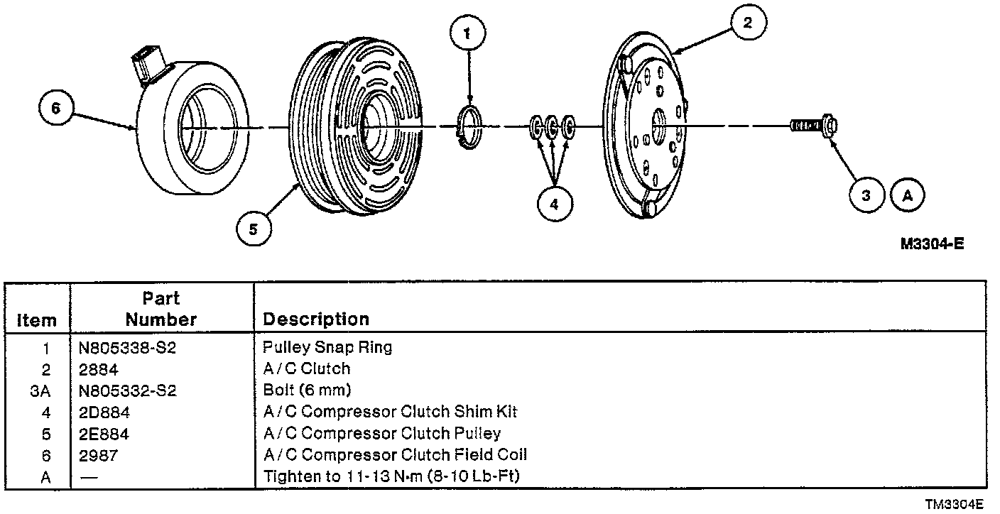 Home >> Ford >> 1994 >> Taurus V6-232 3.8L >> Repair and Diagnosis >> Heating and Air Conditioning >> Compressor HVAC >> Compressor Clutch >> Service and Repair >> With FS-10 Compressor