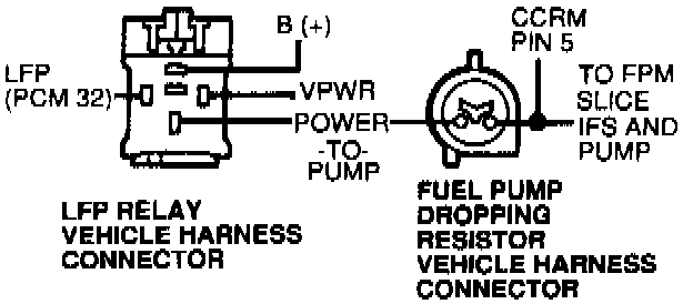 - Measure resistance between Pin 5 of the CCRM vehicle harness connector and the power-to-pump circuit at the LFP relay vehicle harness connector.
