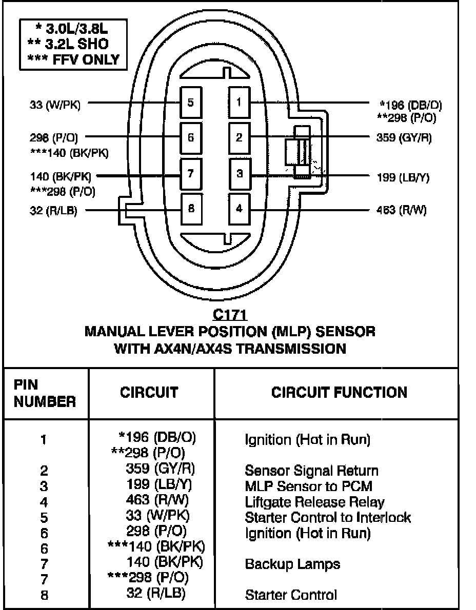Manual Lever Position (MLP) Sensor With AX4N/AX4S Transmission: