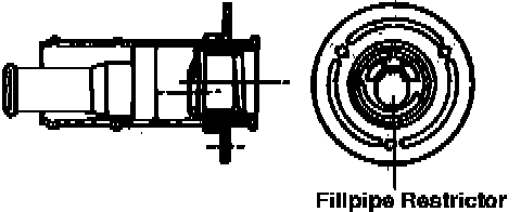 The restrictor consists of a narrow opening in the fuel tank filler pipe covered by a spring steel flap.