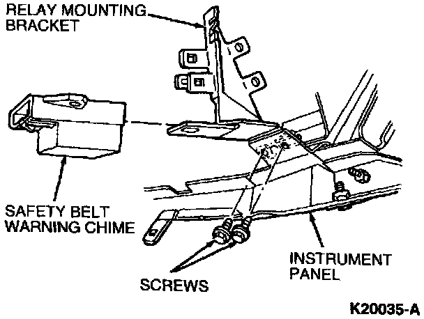 NOTE: The safety belt warning chime is mounted on a bracket to the RH side of the steering column, on the instrument panel reinforcement.