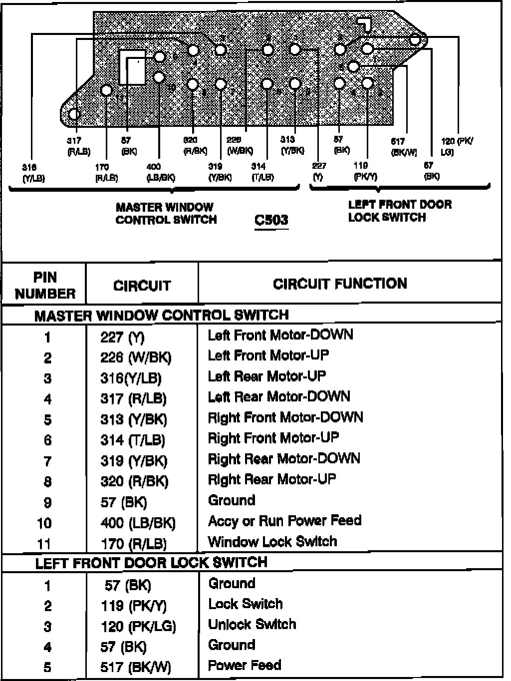 Master Window Control/Left Front Door Lock Switch: