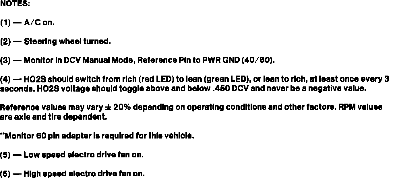 - Key On Engine Off (KOEO) and Hot Idle test values are recorded with vehicle in "NEUTRAL".