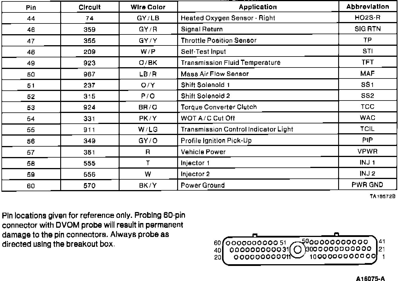 Powertrain Control Module (PCM) Connector Pin Usage.: