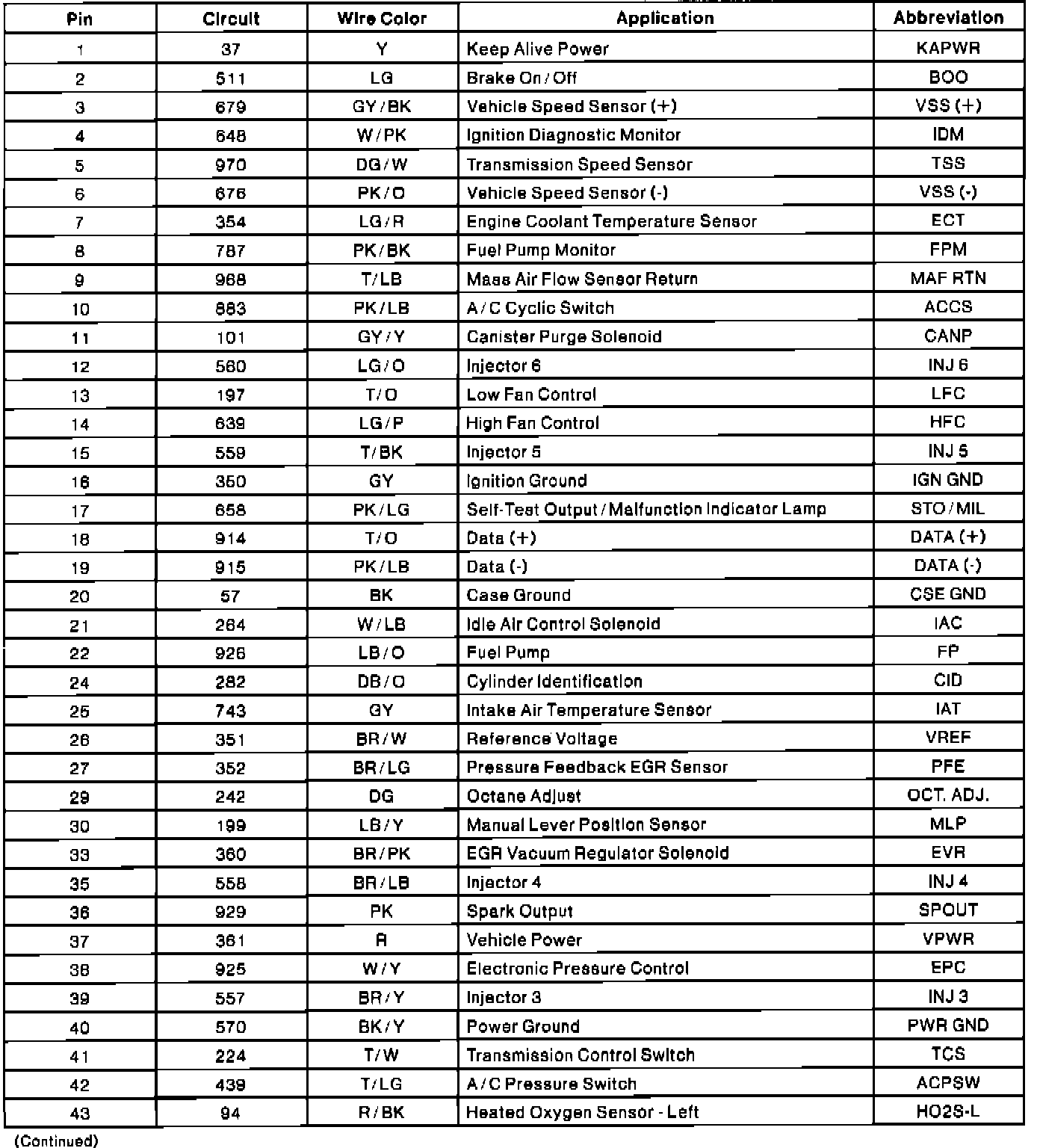 Powertrain Control Module (PCM) Connector Pin Usage.: