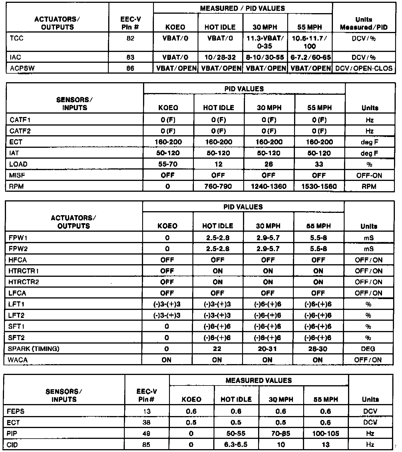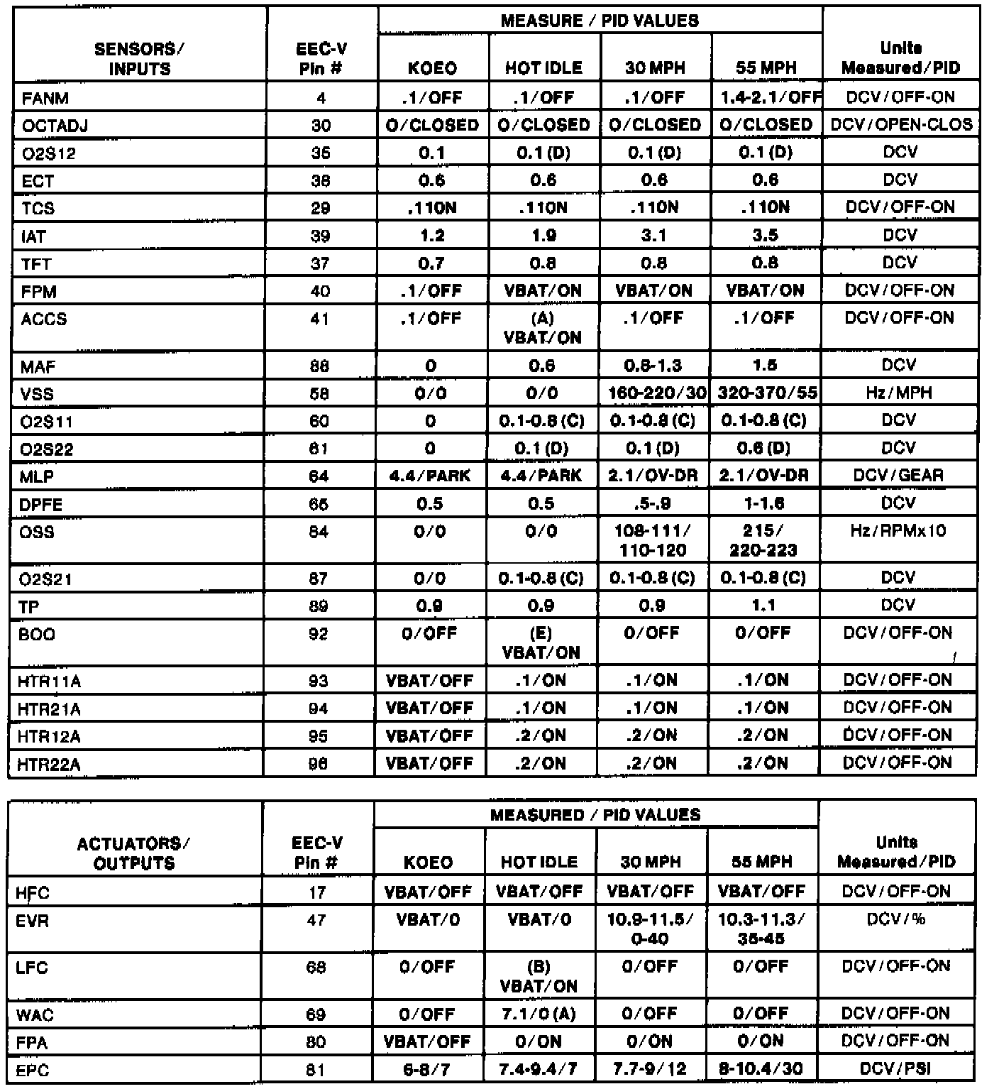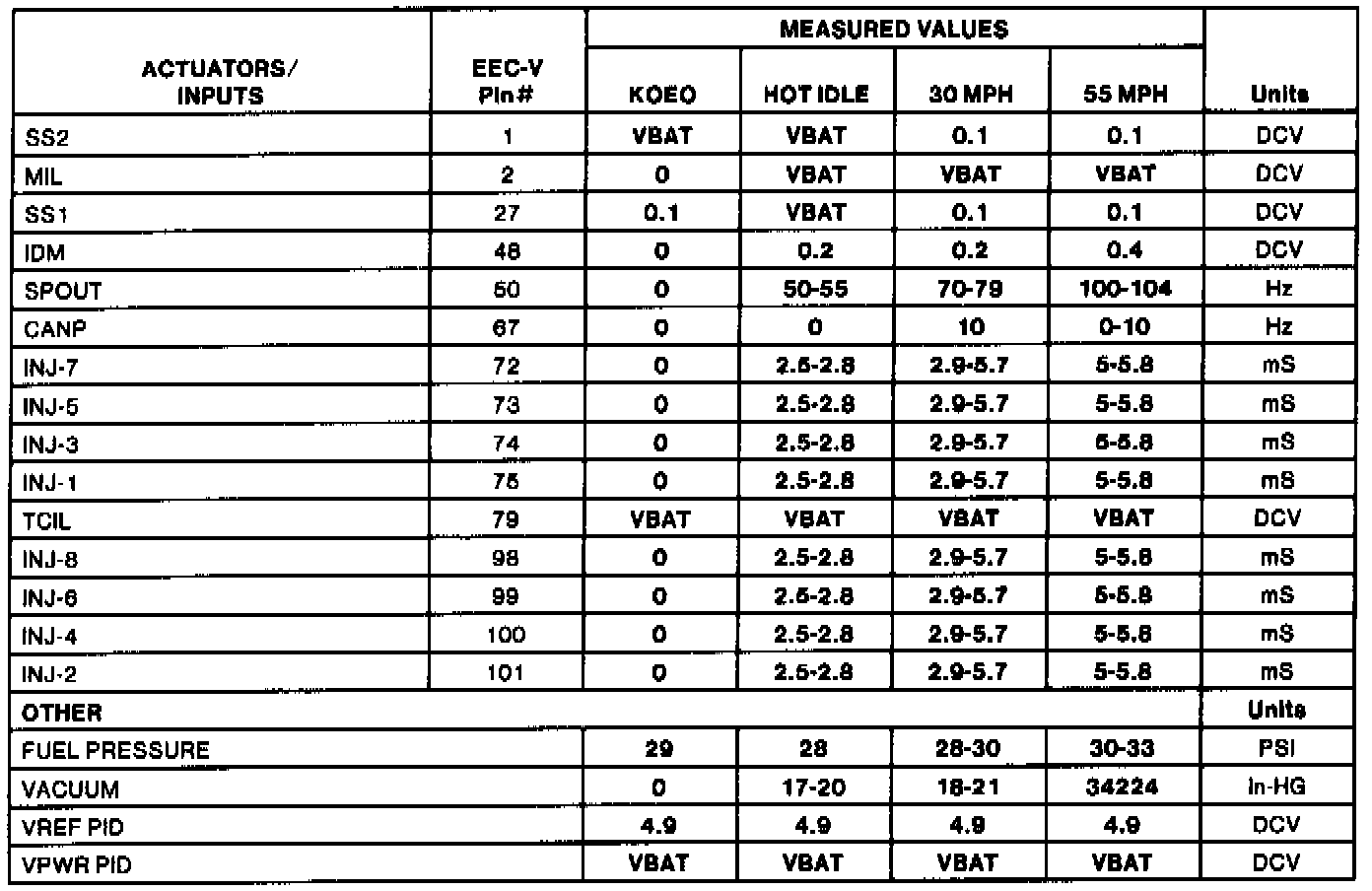 Home >> Ford >> 1994 >> Thunderbird V8-281 4.6L SOHC >> Repair and Diagnosis >> Powertrain Management >> Computers and Control Systems >> Testing and Inspection >> Scan Tool Testing and Procedures >> Normal Scan Data Values - Includes Pids