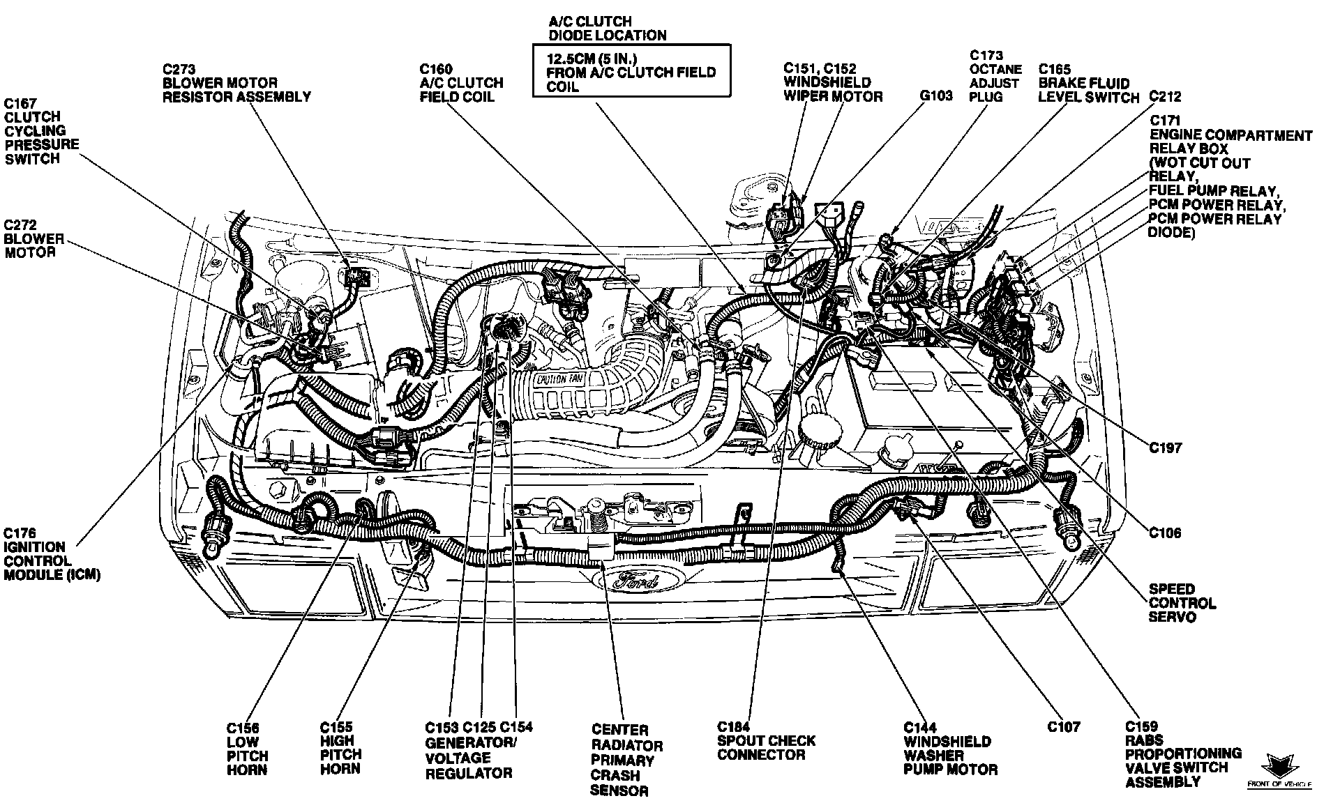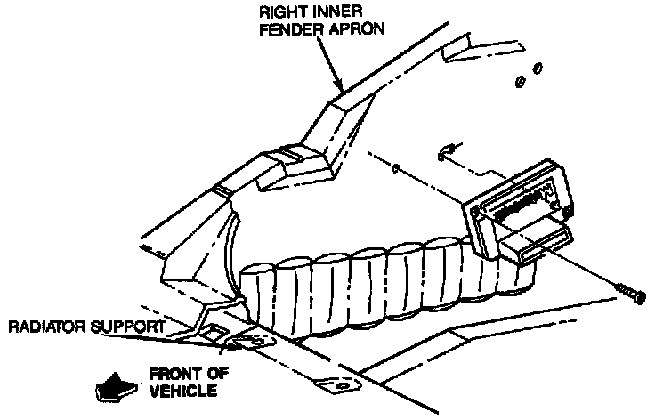 The Ignition Control Module is located at the center of RH fender apron, near air cleaner.