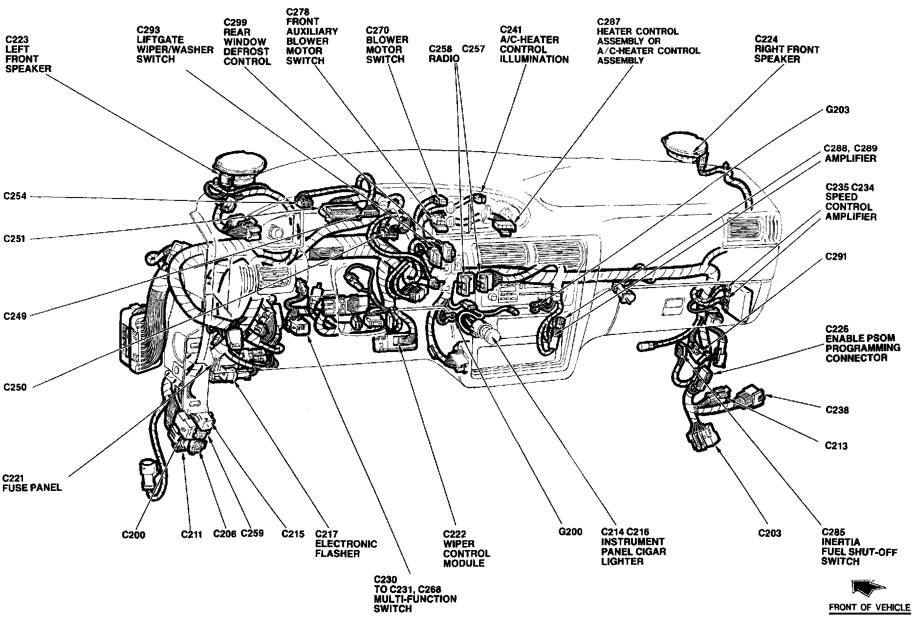 The Wiper Control Module is located behind lower LH side of the instrument panel, right of steering column.