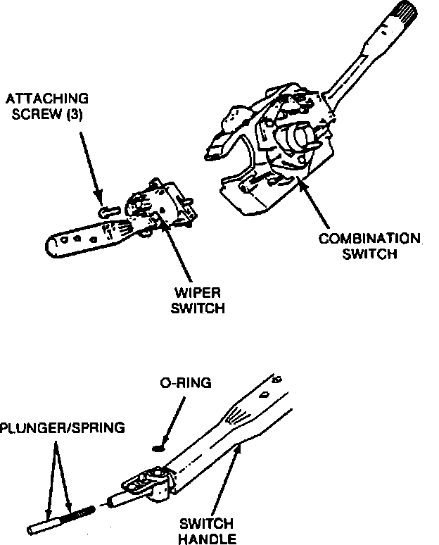 3. Remove wiper switch/interval wiper module attaching screws, then disengage switch from combination switch.