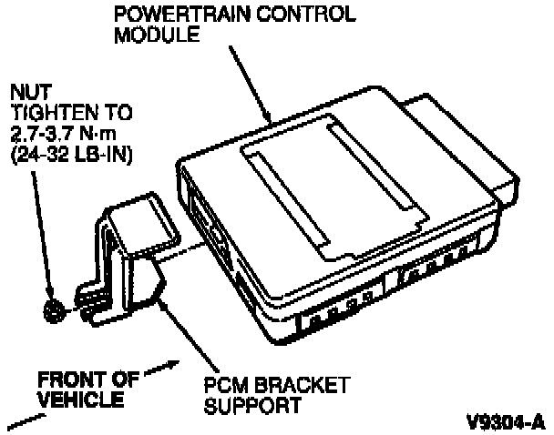 2. Tighten PCM bracket support retainer nut to 2.7-3.7 Nm (24-32 in lb).