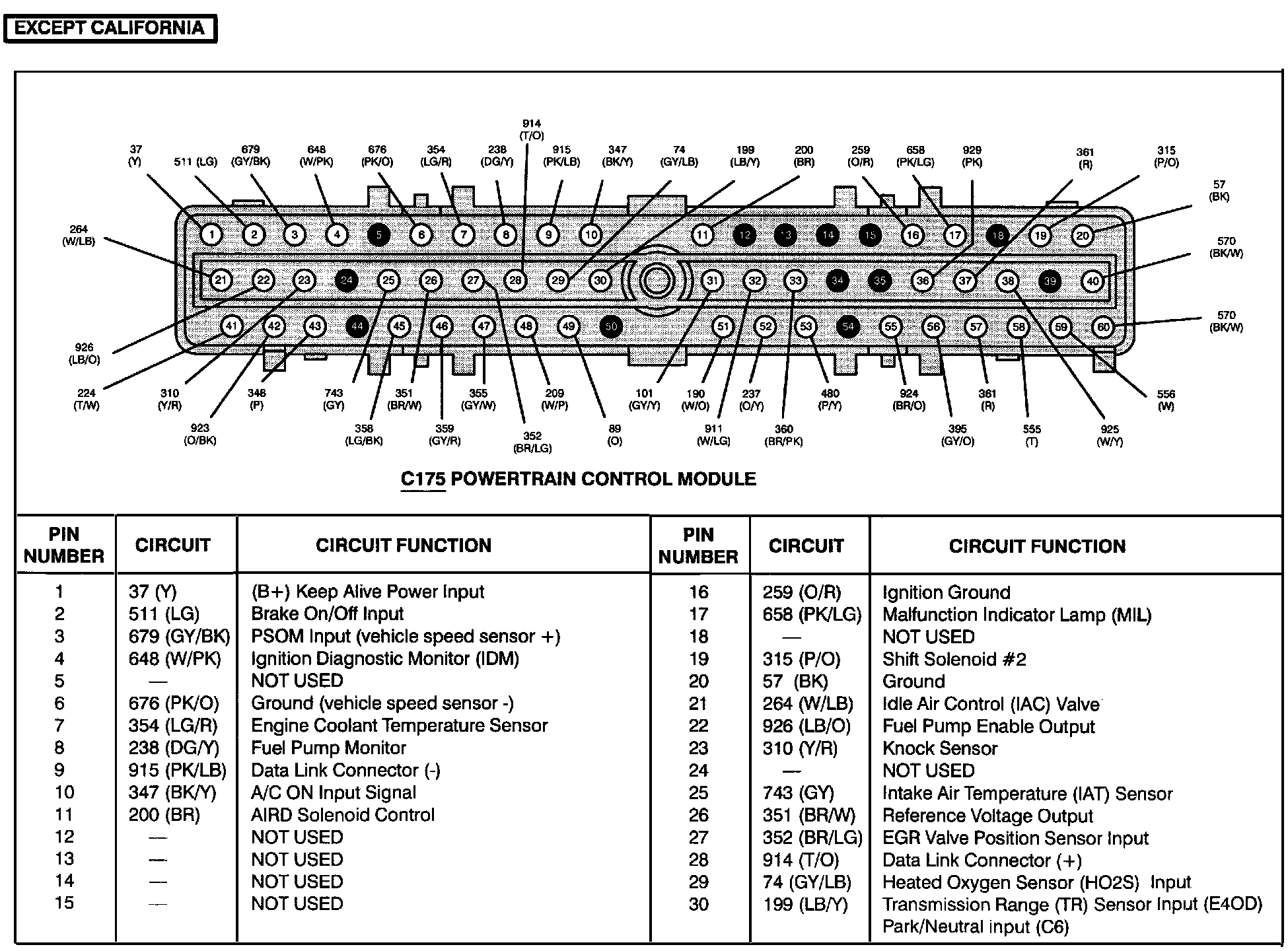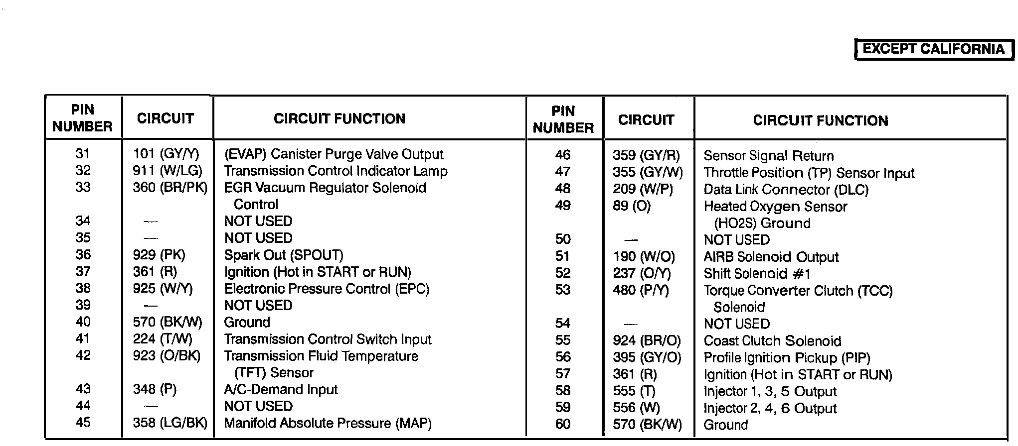 Powertrain Control Module (Except California) (Part 2 Of 2):