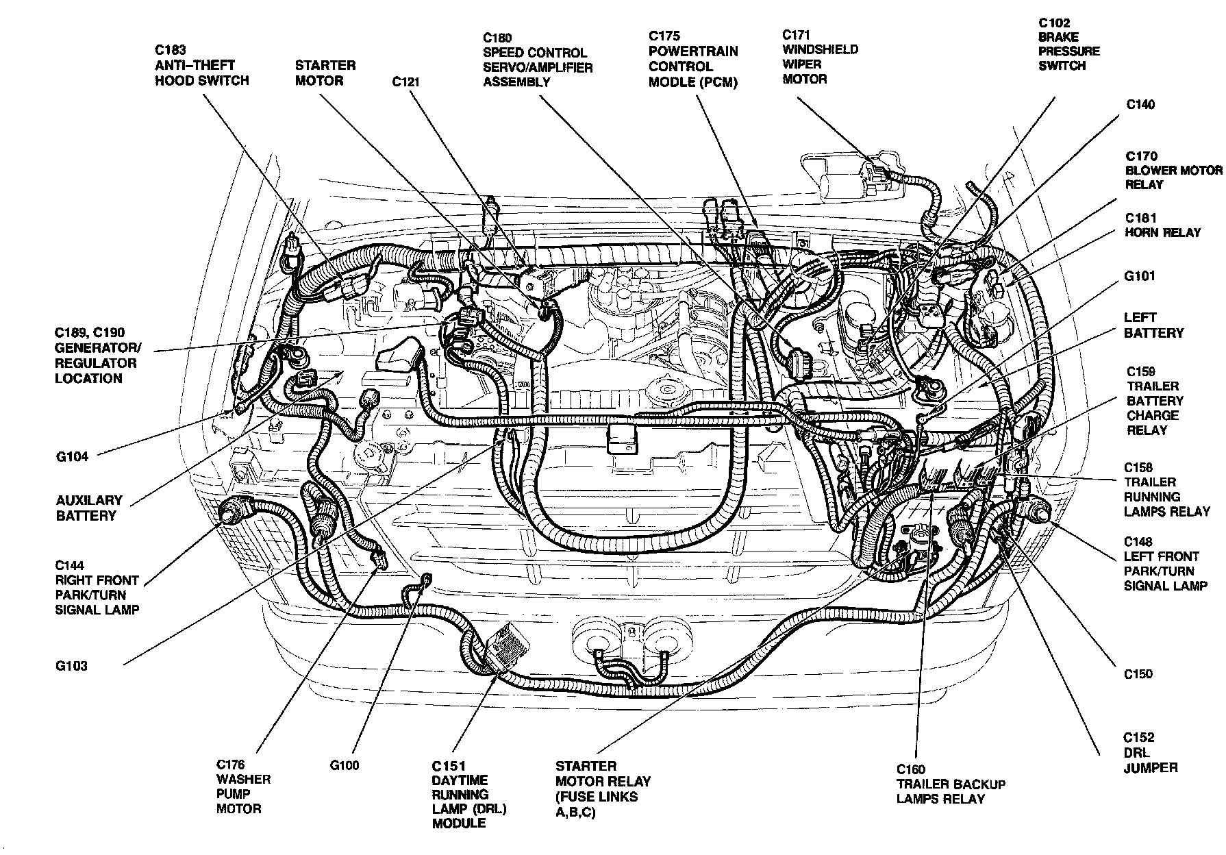 The Powertrain Control Module is located at the left rear of the engine compartment, near brake master cylinder.