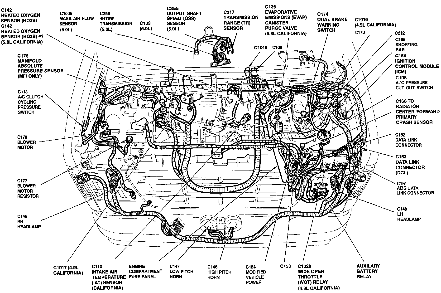 Engine Compartment View - SFI Gas (Shown) MFI Gas (Typical):
