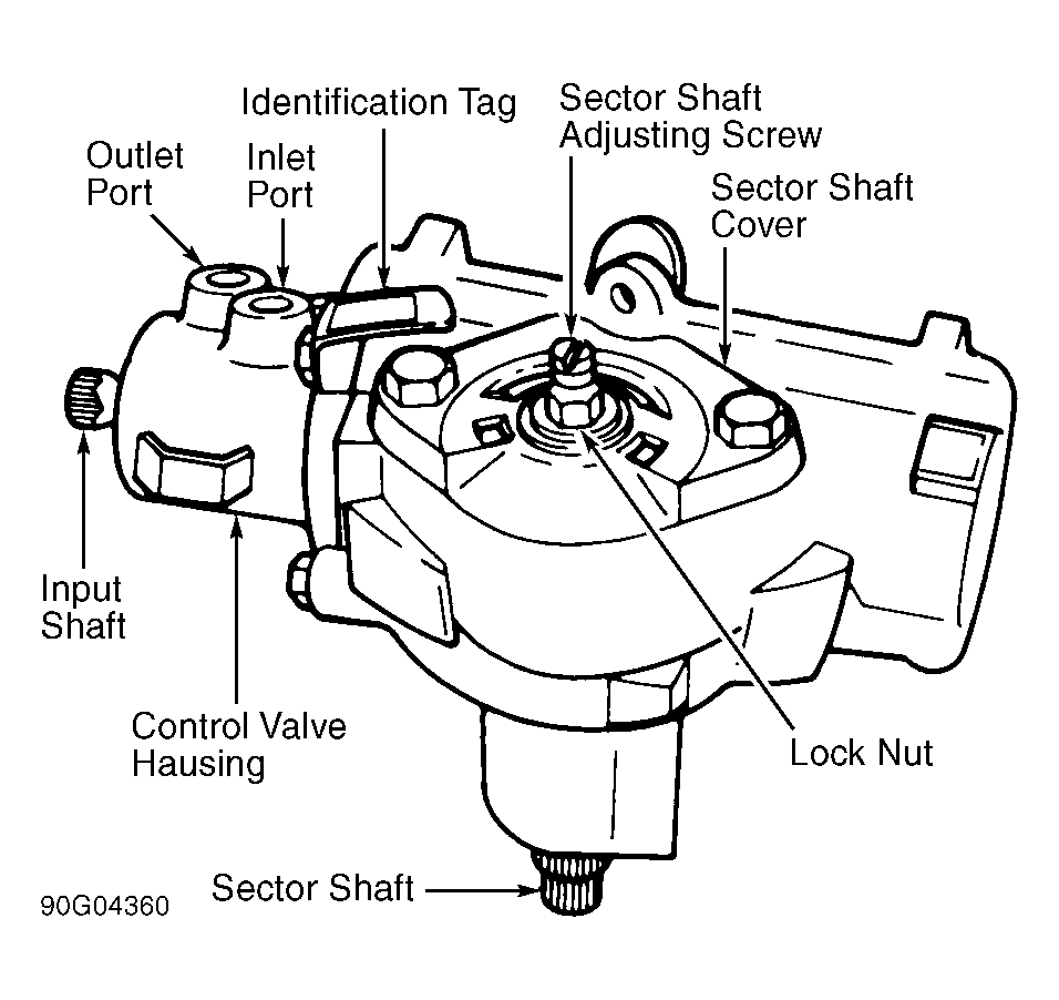 Rotary hydraulic control valve assembly contains upper input shaft/valve sleeve, sleeve Teflon seals, and internal torsion bar. The input shaft/control valve sleeve is retained inside control valve housing by bearing and lock nut. Hydraulic action is generated by relative rotary motion between input shaft/control valve sleeve and worm/piston assembly. See Fig 1 and Figure .