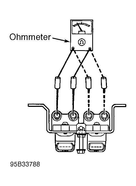 - Check secondary resistance between coil towers of each coil. See Fig 1 . See IGNITION COIL RESISTANCE table. If resistance is not within specification, replace coil.