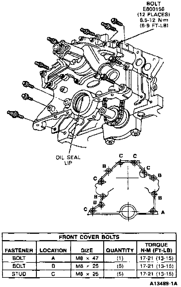 8. Install the engine front cover and tighten bolts to 17-21 Nm (13-15 ft lb).