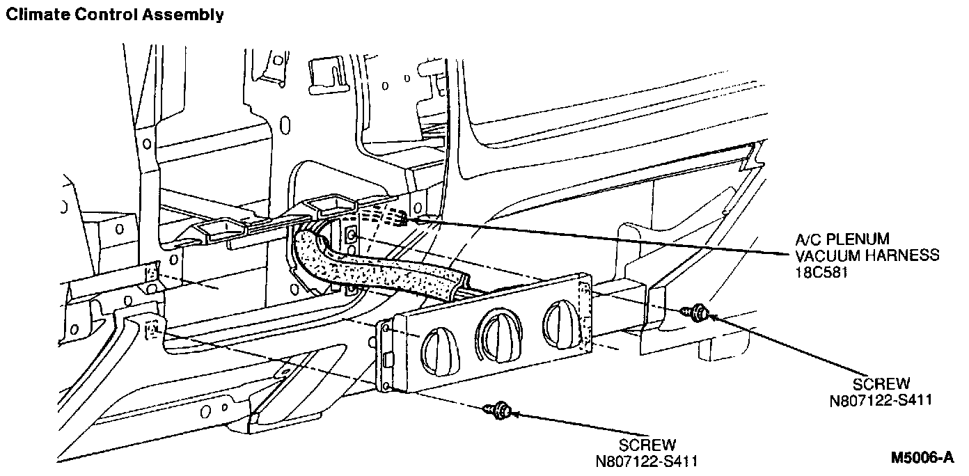 3. Remove four screws attaching heater control assembly to instrument panel.