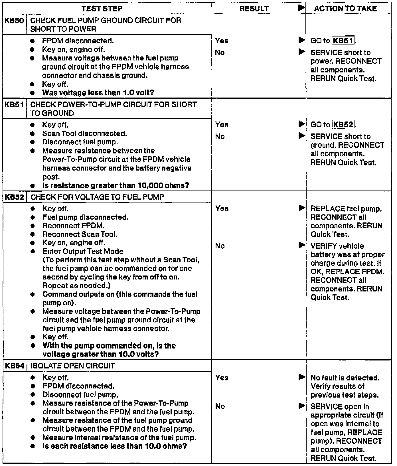 Home >> Ford >> 1995 >> Mustang V6-232 3.8L >> Repair and Diagnosis >> Powertrain Management >> Computers and Control Systems >> Testing and Inspection >> Pinpoint Tests >> KB - Fuel Pump Driver Module (FPDM) >> KB50 - KB54