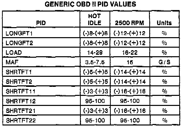 Generic OBDII Parameter Identification Values