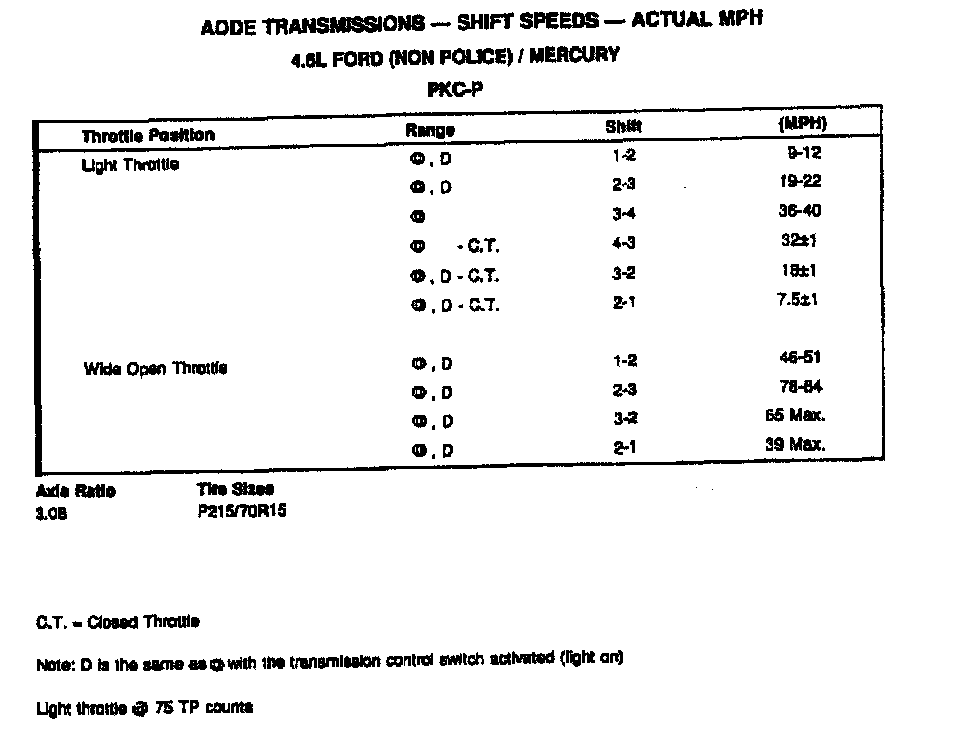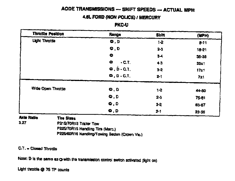 AODE 4-spd A/T, Shift Speeds (4.6L Ford/Mercury):