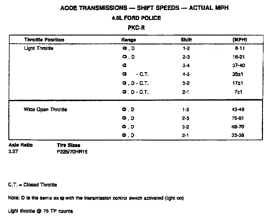 AODE 4-spd A/T, Shift Speeds (4.6L Ford Police):