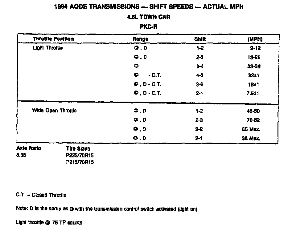 AODE 4-spd A/T, Shift Speeds (4.6L Town Car):