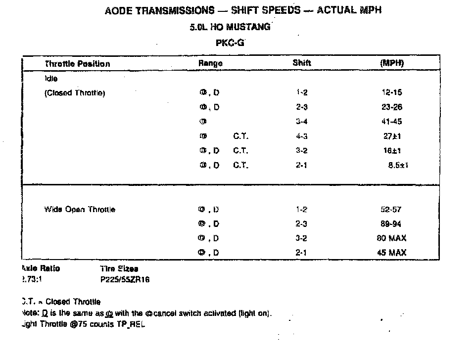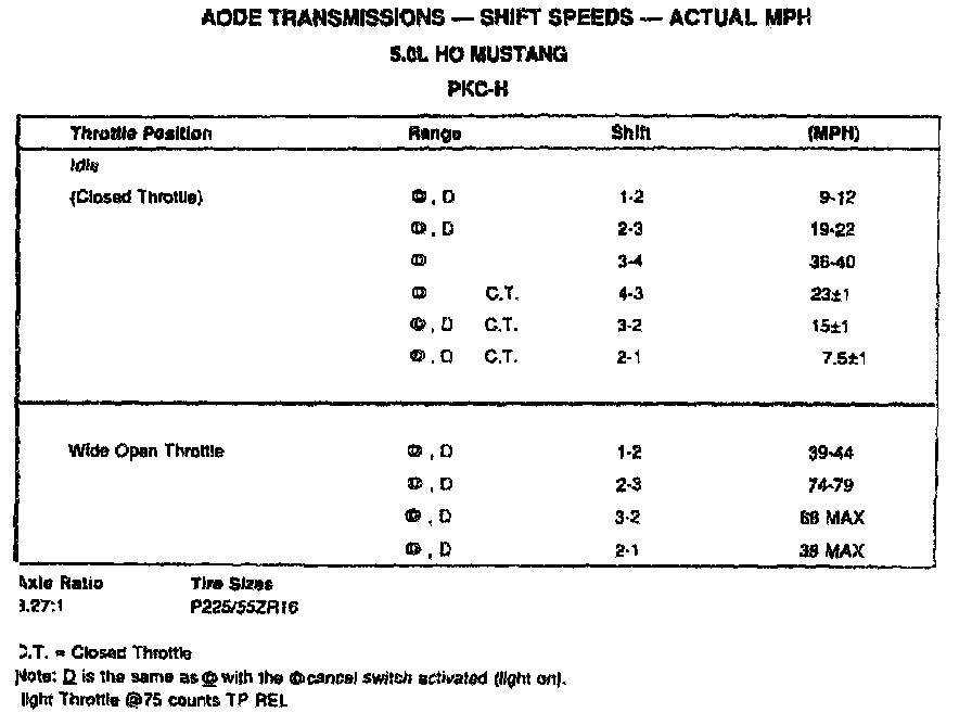 AODE 4-spd A/T, Shift Speeds (5.0L HO Mustang):