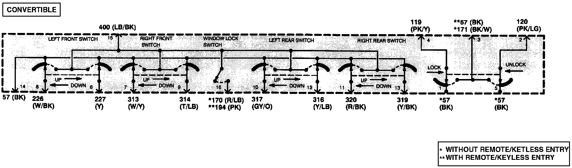 Master Window/Door Lock Control Switch (Convertible) - Schematic: