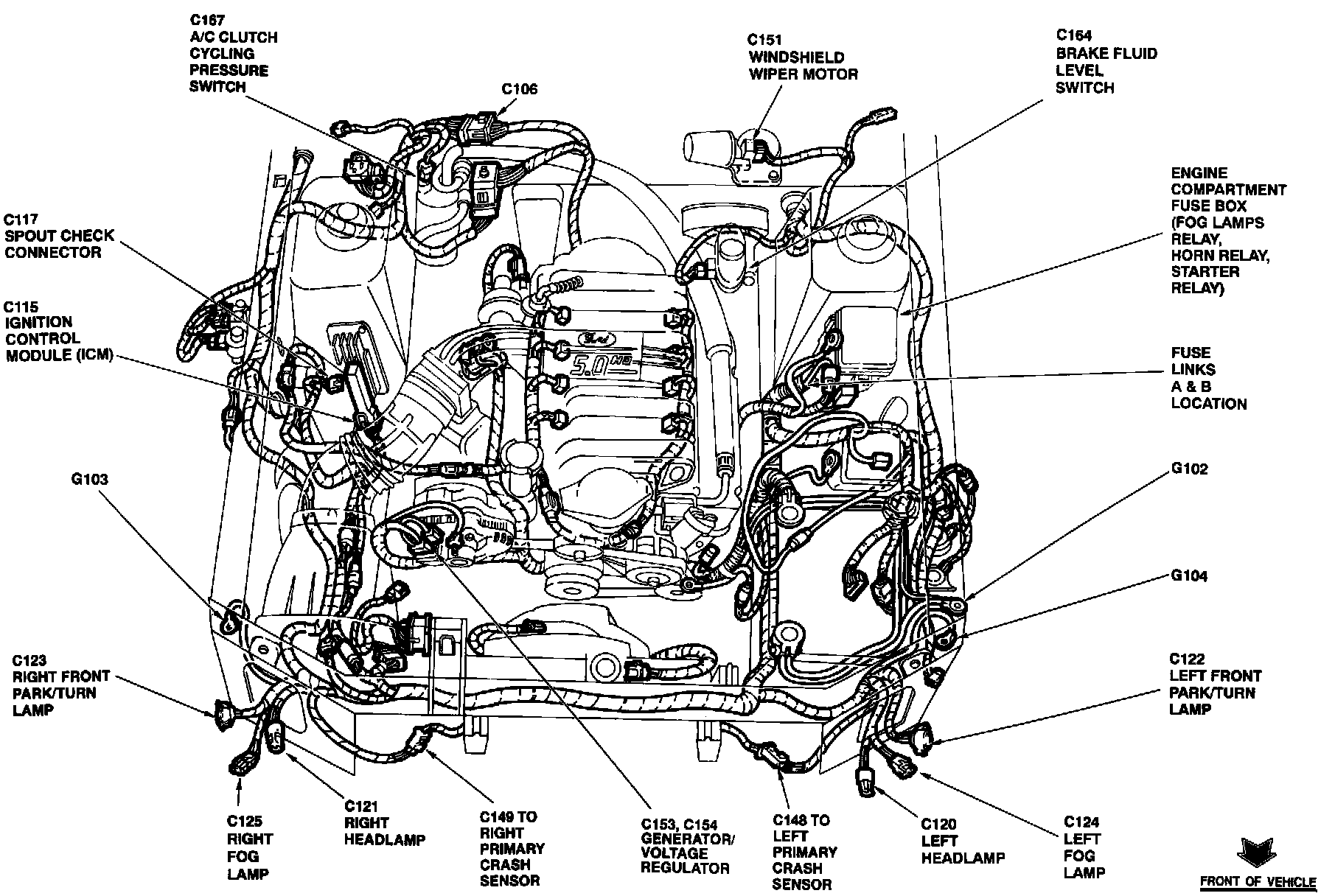 The Ignition Control Module is located on the RH fender apron, forward of strut tower.