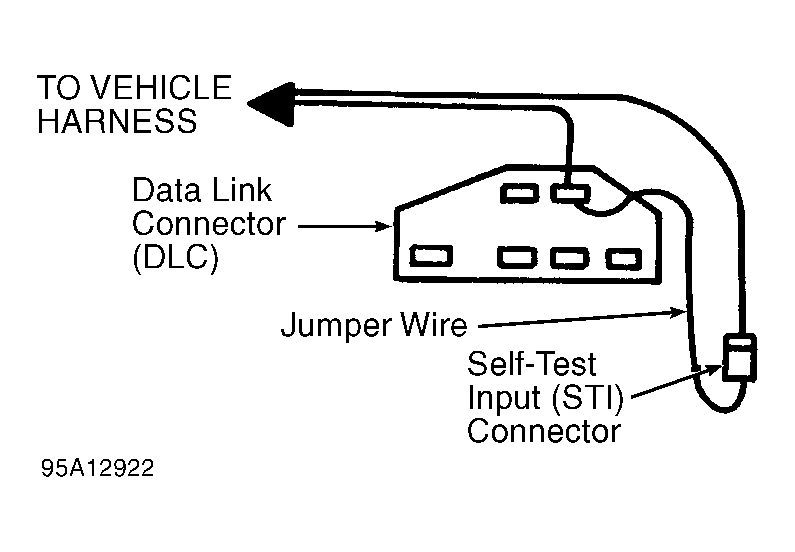 Connect test equipment. See Figure or Figure . Turn ignition on. Activate self-test using jumper lead or diagnostic tester. Wait 10 seconds, and then deactivate and reactivate self-test. Wiggle test mode is now activated. Tap, move and wiggle suspect sensor and/or harness area. If a fault is detected, a diagnostic trouble code may be stored in memory and indicated at diagnostic tester or scan tester. Retrieve code, and perform appropriate test. See DIAGNOSTIC TROUBLE CODE REFERENCE CHART.