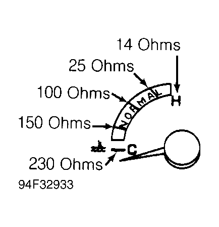- Remove instrument cluster. See INSTRUMENT CLUSTER under REMOVAL & INSTALLATION. Using fused jumper wire, apply battery voltage to "+" terminal on temperature gauge. Connect "-" terminal on gauge to ground.