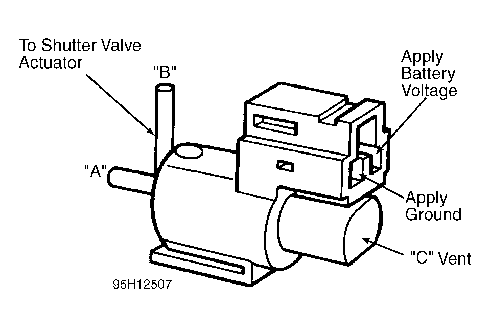 Remove solenoid. With no power to solenoid, air should be able to flow between port "B" and "C" (vent). See Fig 1 . Using vacuum tester apply vacuum to port "A", vacuum should hold.