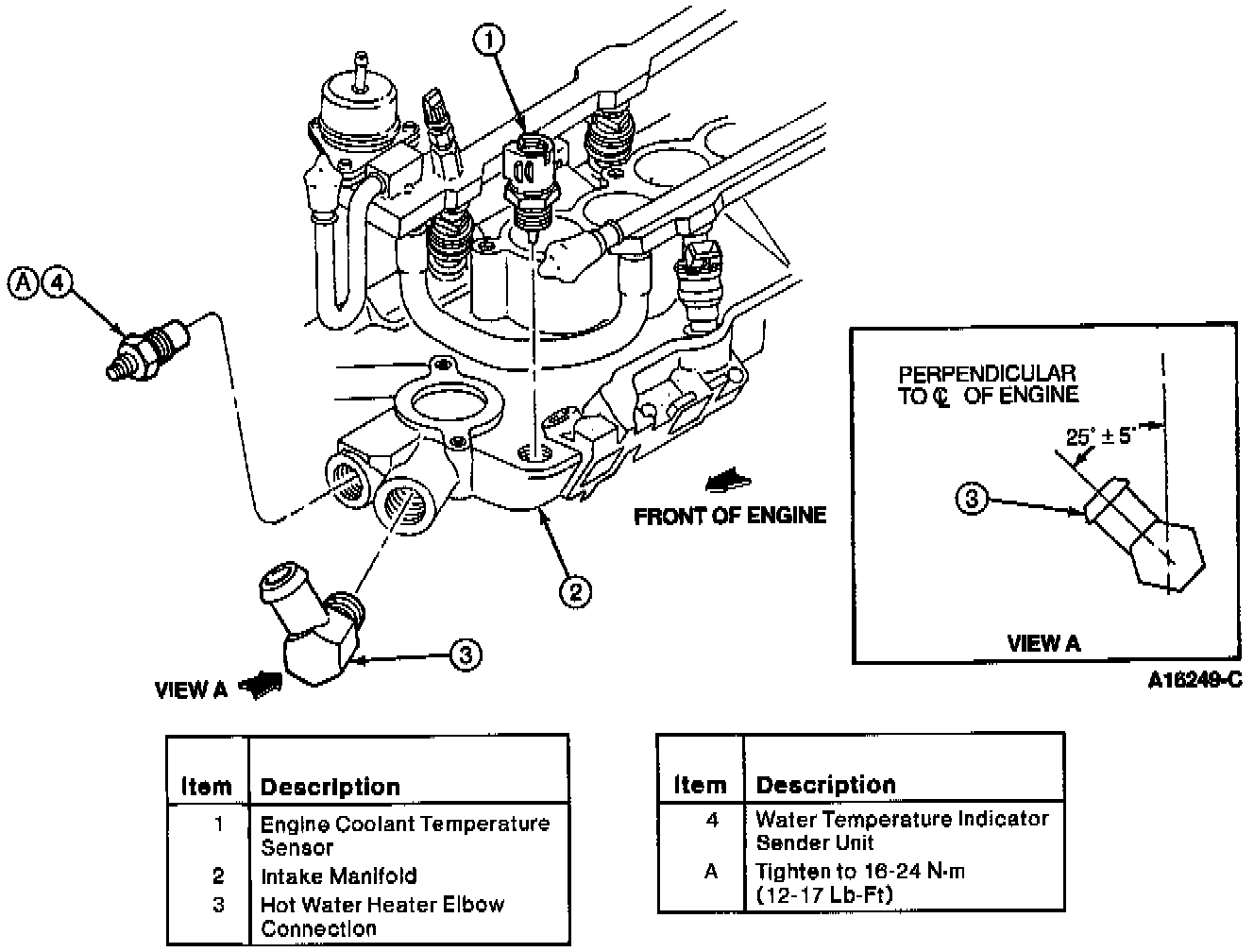 Engine Coolant Temperature Sensor And Heater Elbow Connection: