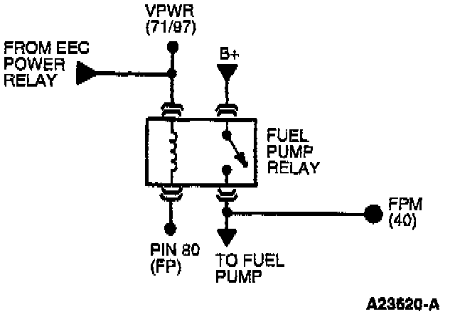 For additional information on the fuel pump (FP) circuit, refer to Description and Operation / EEC-V Software and Hardware / PCM Related Outputs.