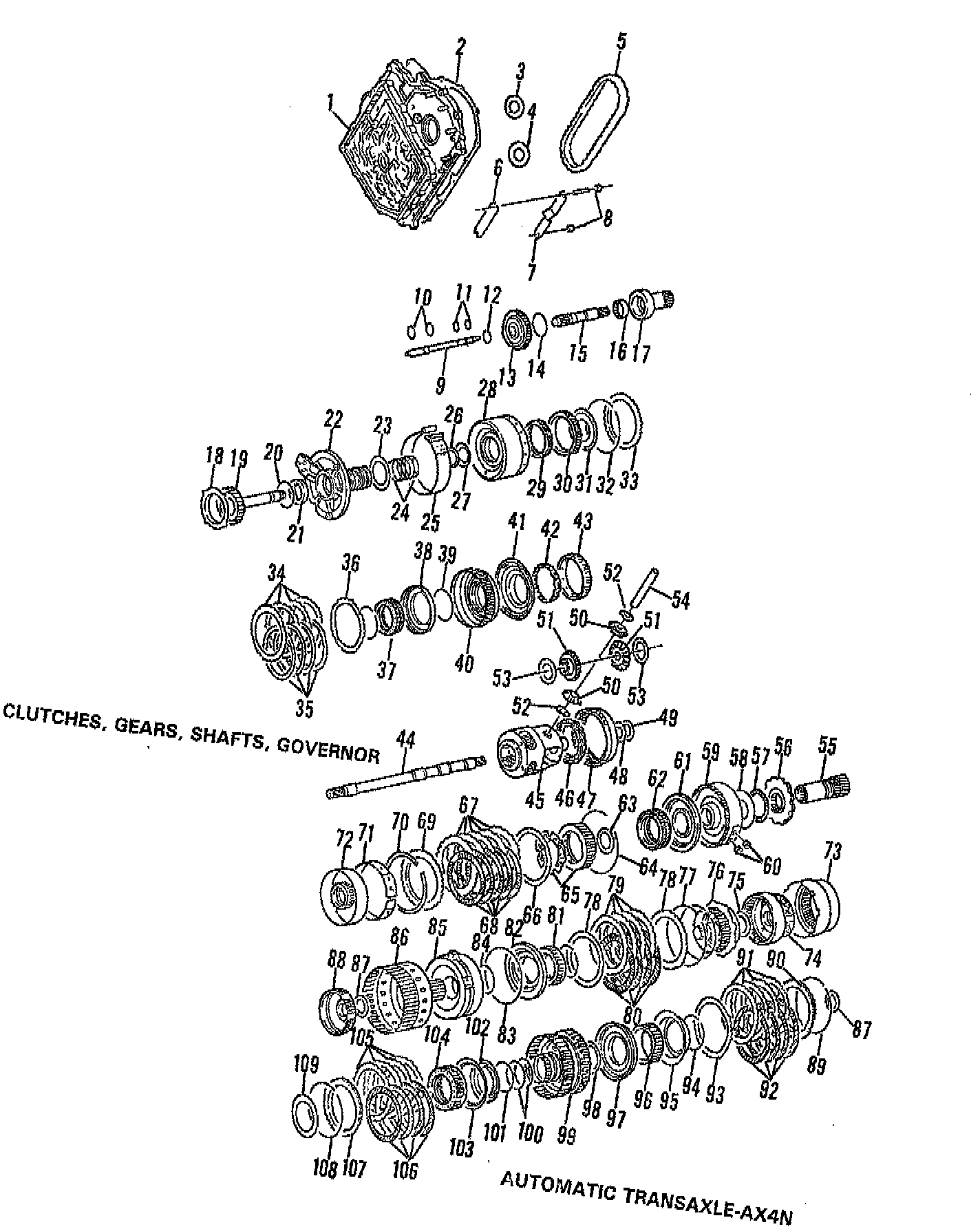 Clutches, Gears, Shafts & Governor, AX4N: