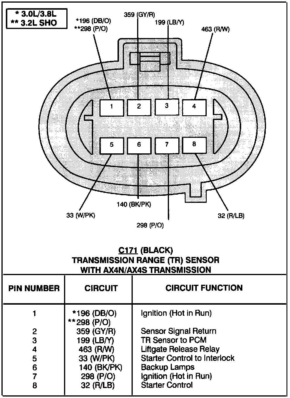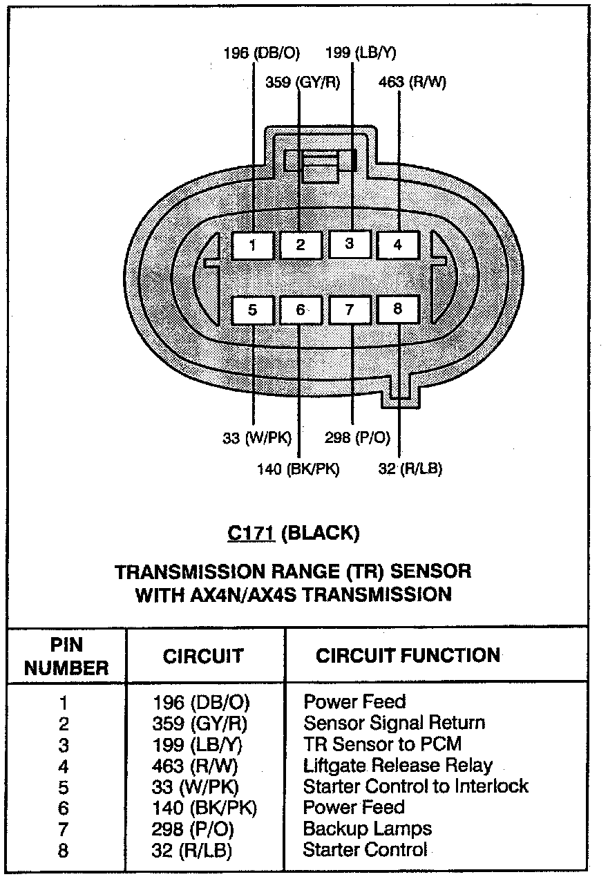 Transmission Range Sensor (With AX4N/AX4S Transmission):