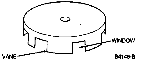 6. When the vane clears the opening, the window edge causes the signal to change to zero volts. This signal is used by the PCM for crankshaft position sensing. The computation of the desired spark advance is based on engine demand and calibration.