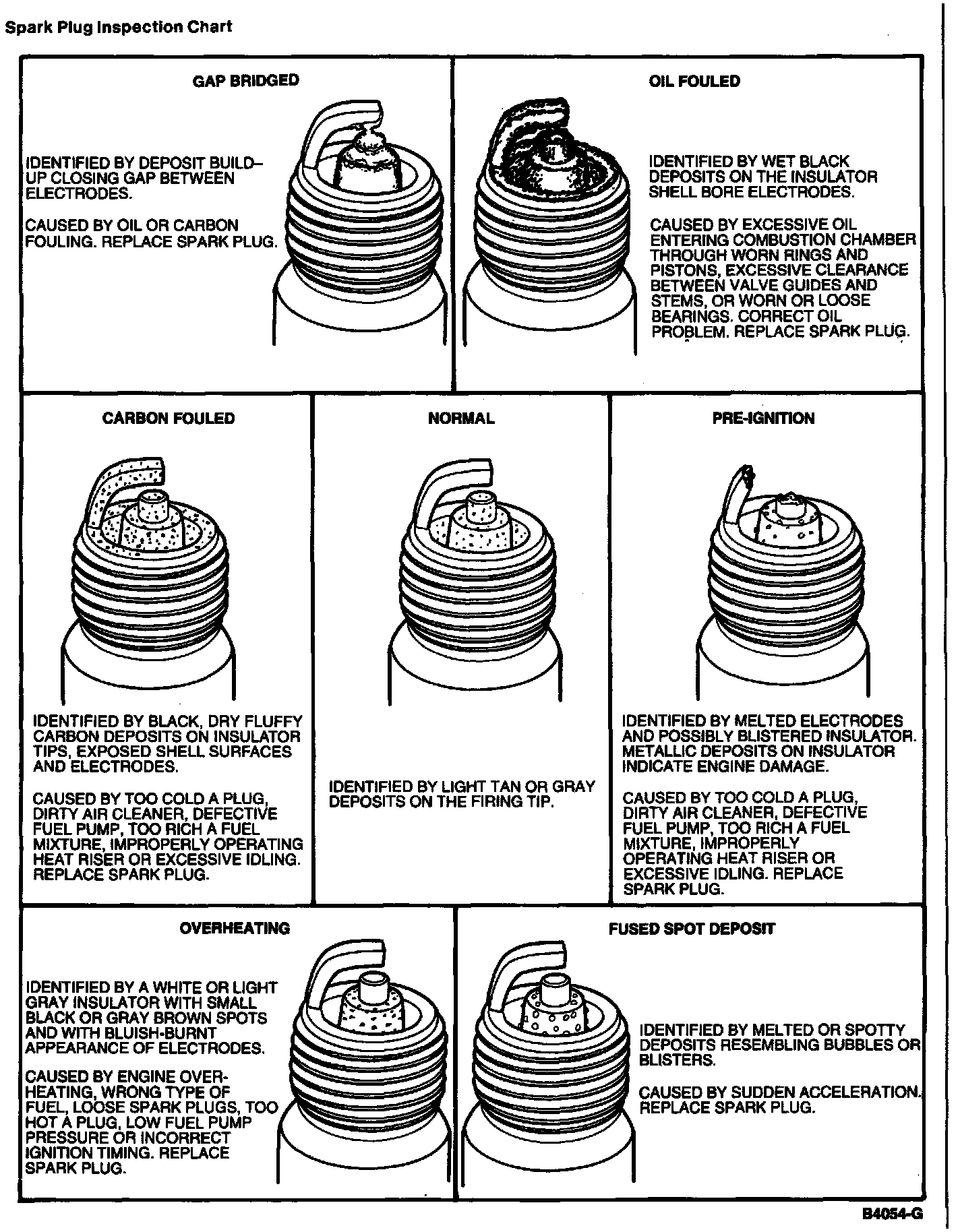 Inspection Chart. Replace spark plugs if they are worn or damaged.