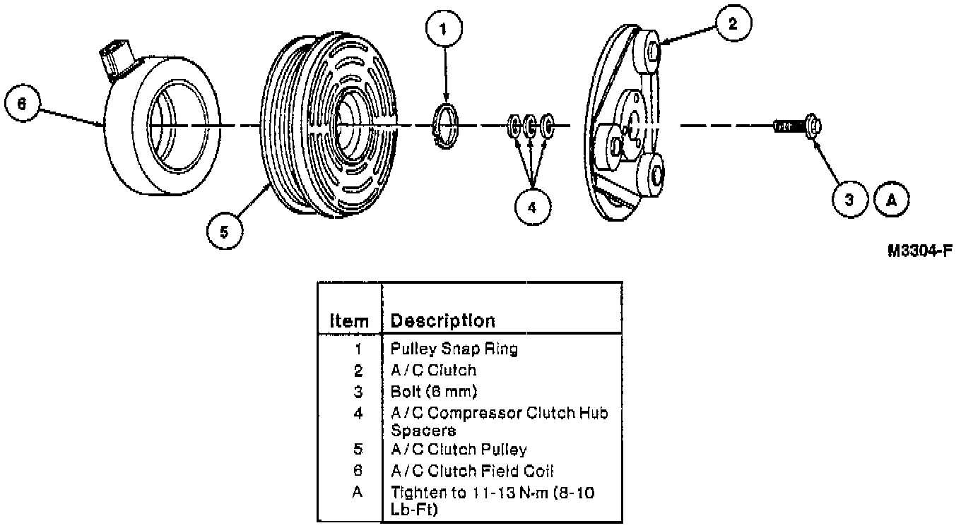 Home >> Ford >> 1995 >> Taurus V6-232 3.8L >> Repair and Diagnosis >> Heating and Air Conditioning >> Compressor HVAC >> Compressor Clutch >> Service and Repair >> With FS-10 Compressor