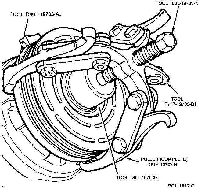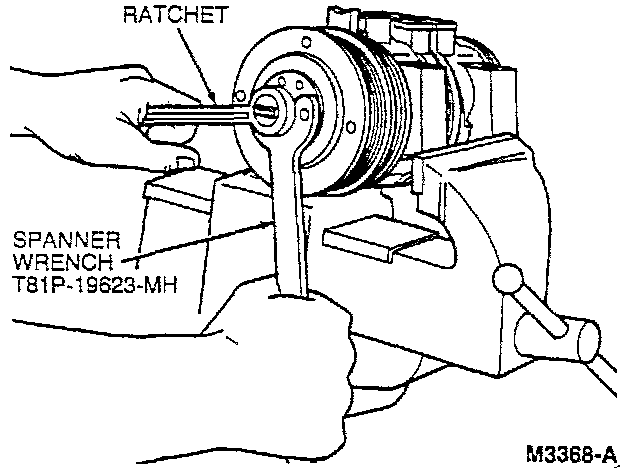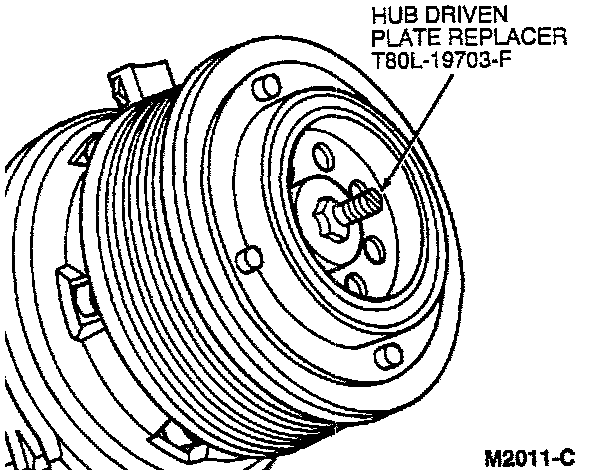 Home >> Ford >> 1995 >> Taurus V6-232 3.8L >> Repair and Diagnosis >> Heating and Air Conditioning >> Compressor HVAC >> Compressor Pulley >> Service and Repair >> With 10P15F A/C Compressor