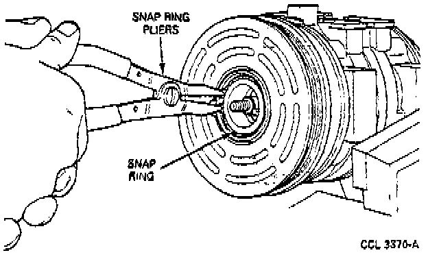 3. Install the pulley retaining snap ring with the bevel side of the snap ring out.