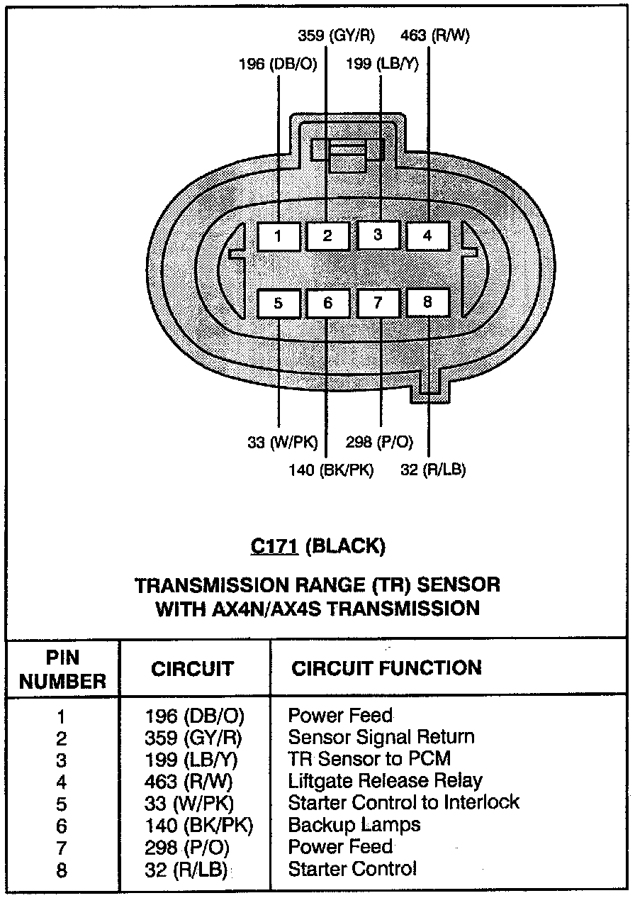 Home >> Ford >> 1995 >> Taurus V6-232 3.8L >> Repair and Diagnosis >> Powertrain Management >> Computers and Control Systems >> Transmission Position Sensor/Switch >> Diagrams