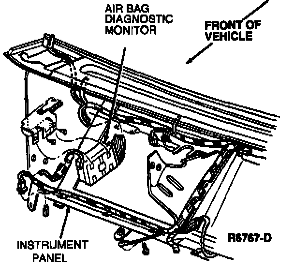 4. Depress two air bag diagnostic monitor retaining tabs and slide air bag diagnostic monitor off its bracket.