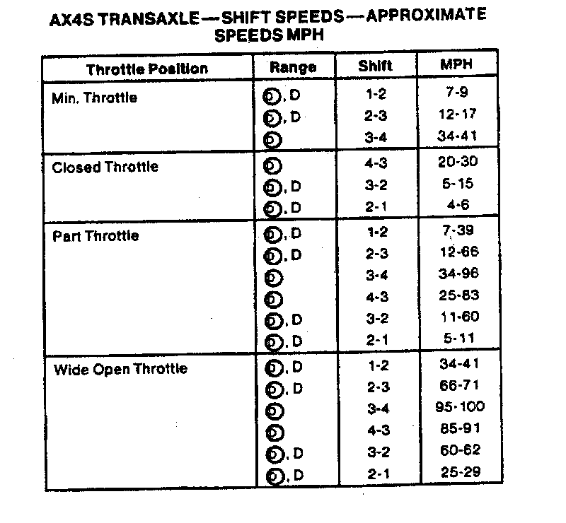 AX4S 4-spd A/T, Shift Speeds (Taurus/Sable):