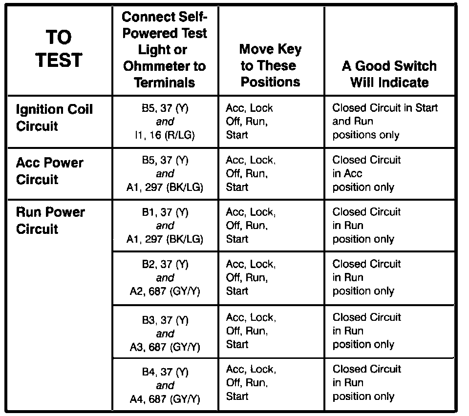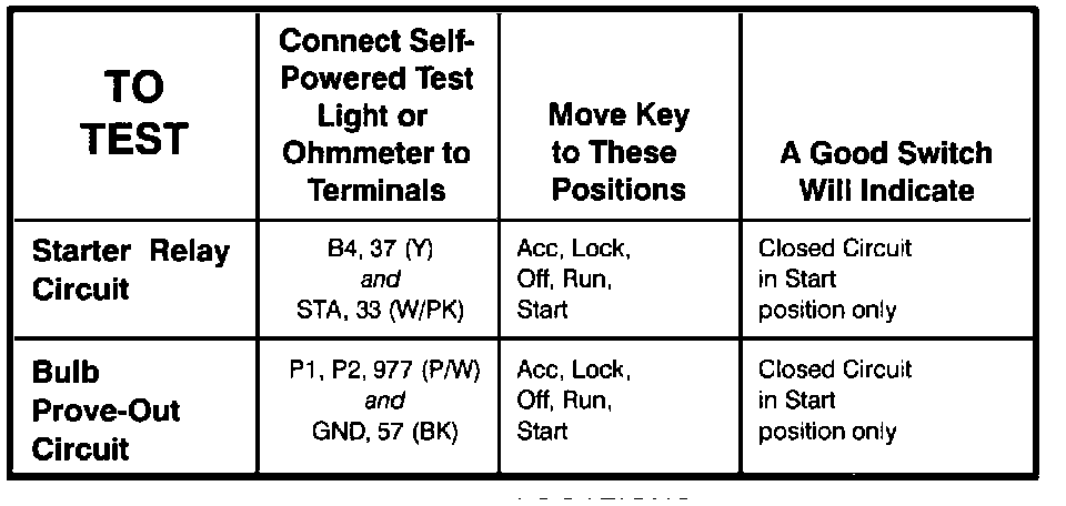 Ignition Switch - Component Testing Procedure (Part 2 Of 2):